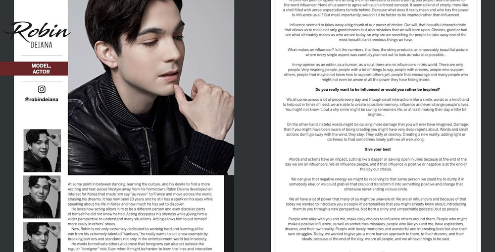 In my opinion as an editor, as a human, and as a soul, there are no influencers in this world. There are only people. Very inspiring people, people with a lot of things to say, people with dreams, people who support others, people that maybe not know how to support others yet, people that encourage and many people who might not even be aware of all the power they have hiding inside.